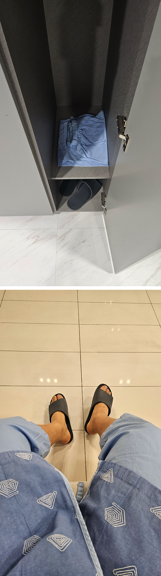 문진표는 앱·웹으로 쉽게 제출됐다. 아날로그 종이에 일일이 쓰는 시대는 끝난 듯. 병원엔 7시쯤 도착해 6번을 받았는데, 일찍 가면 확실히 대기 줄이 짧다. 탈의실에서 뒷부분이 트여 있는 전용 바지, 길게 늘어진 상의, 병원 슬리퍼까지 착용하니 일단 마음가짐부터 달라진다. 접수만 하면 간호사 분들이 검사 순서마다 불러줘서, 정신없이 여기저기 옮겨 다녔다.